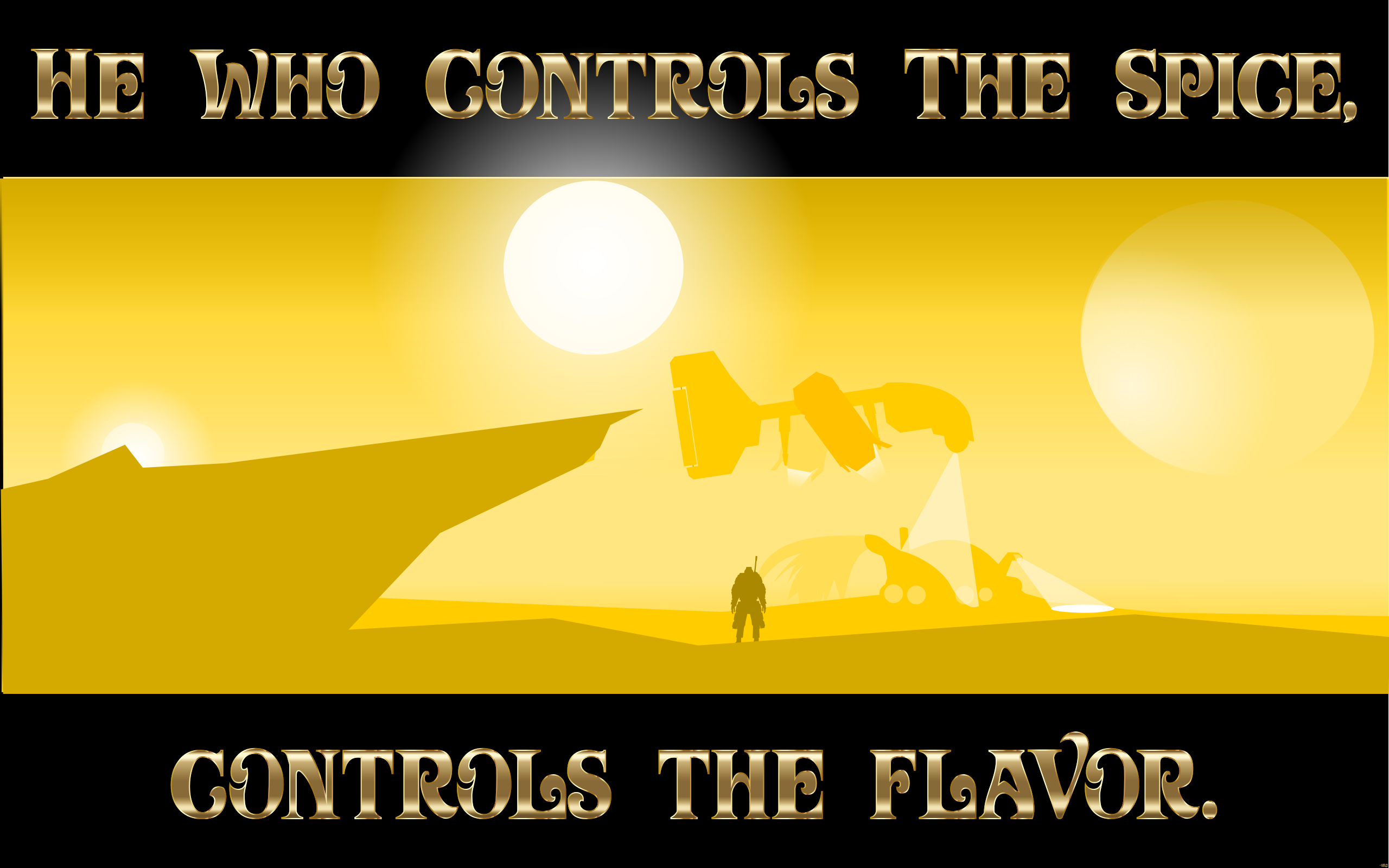 Tags: alien, desert, dune, extra terrestrial, funny, humor, joke, landscape, laugh, planet, quote, science fiction, sci fi, text, type, typography, word, spice, star war, control, flavor