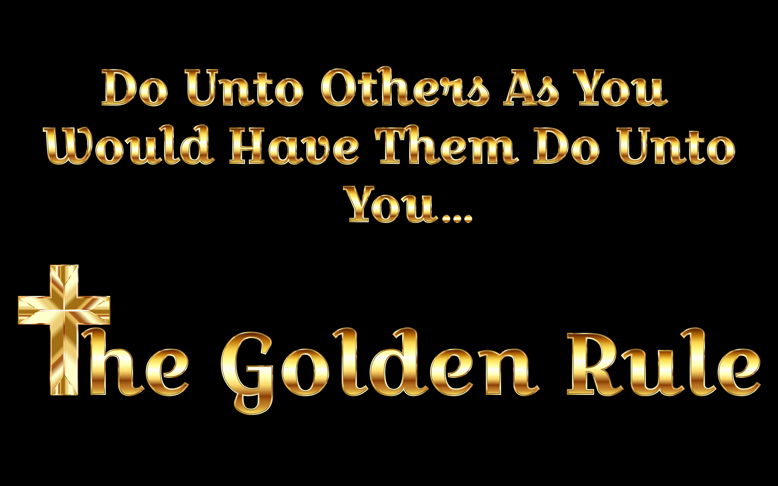 This features a cross with the words "The Golden Rule" written below it. This phrase is commonly known as "Do unto others as you would have them do unto you." The text is displayed in gold, giving it an elegant appearance. The cross serves as a symbol of Christianity and the message behind the golden rule.