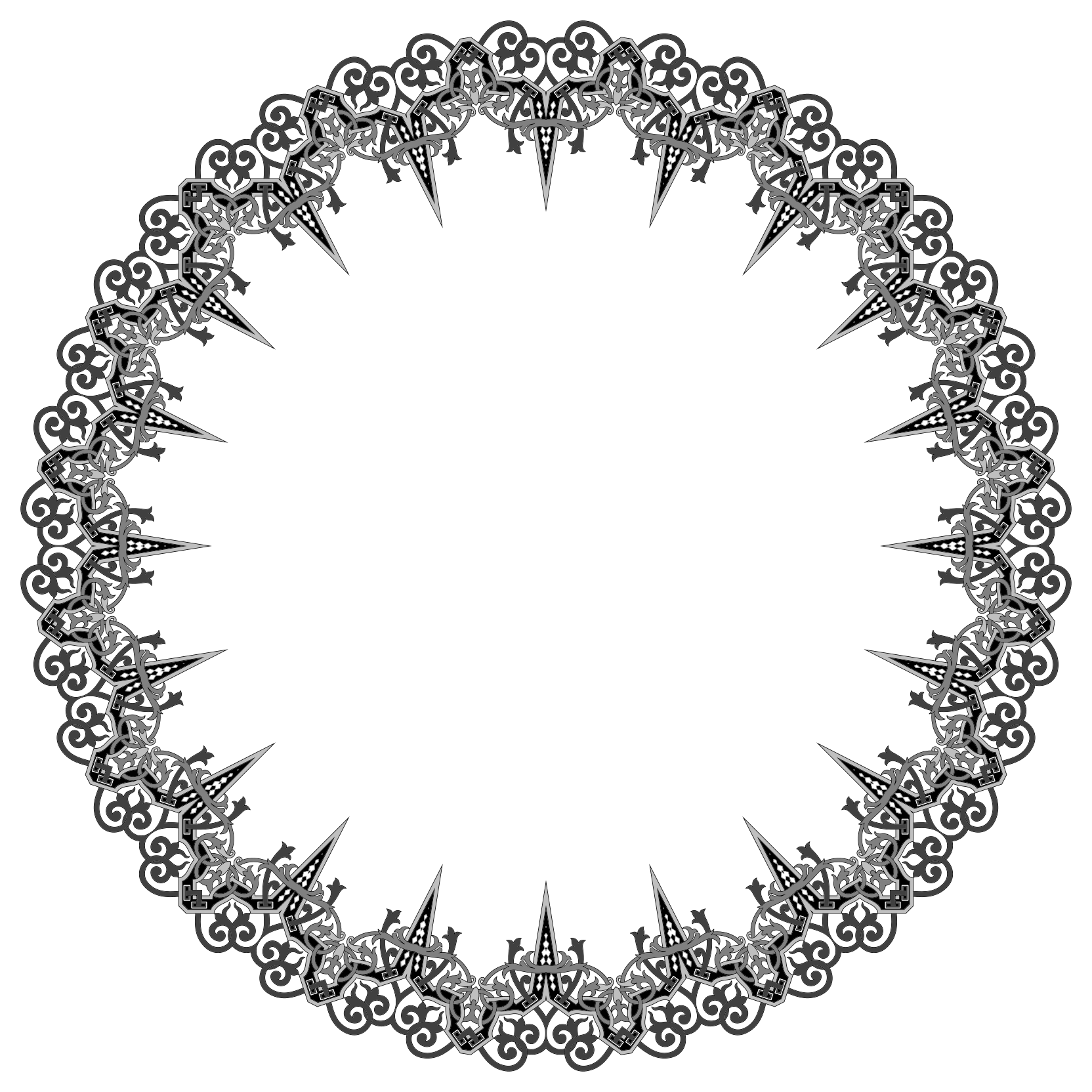 This features a round, ornate design with an intricate pattern of interlocking circles. Each circle is adorned with a unique combination of spikes and decorative elements, creating a visually striking composition. The overall effect is that of a lace-like pattern, giving the impression of a delicate yet powerful artistic expression. The design appears to be a close-up view of this intricate pattern, emphasizing its complexity and beauty.