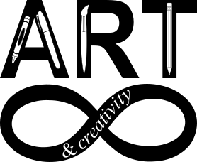 This features a white background with black text that reads "Art & Creativity." Above the word "creativity," there is an infinity symbol, which represents endlessness. This design suggests that art and creativity are limitless in their potential for expression and growth.