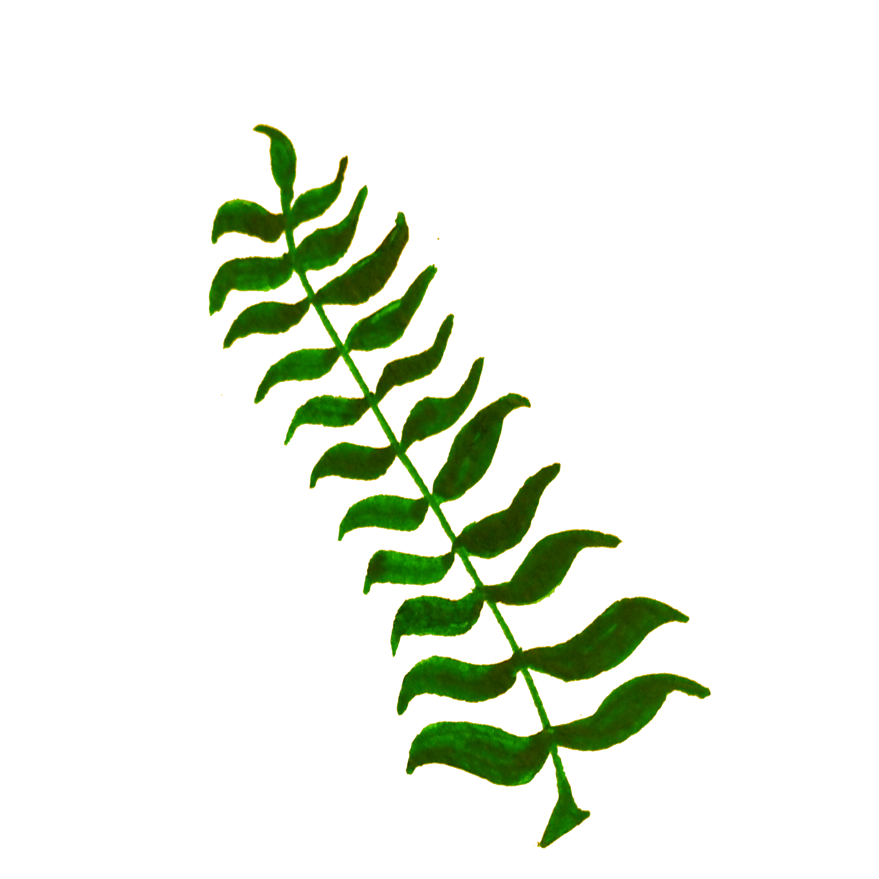 This features a green leafy plant with long, thin leaves. The plant is displayed in a close-up view, showcasing its intricate details. The leaves are arranged in an artistic manner, creating a visually appealing composition. This image could be part of a series of paintings or illustrations featuring various plants and their leaves.