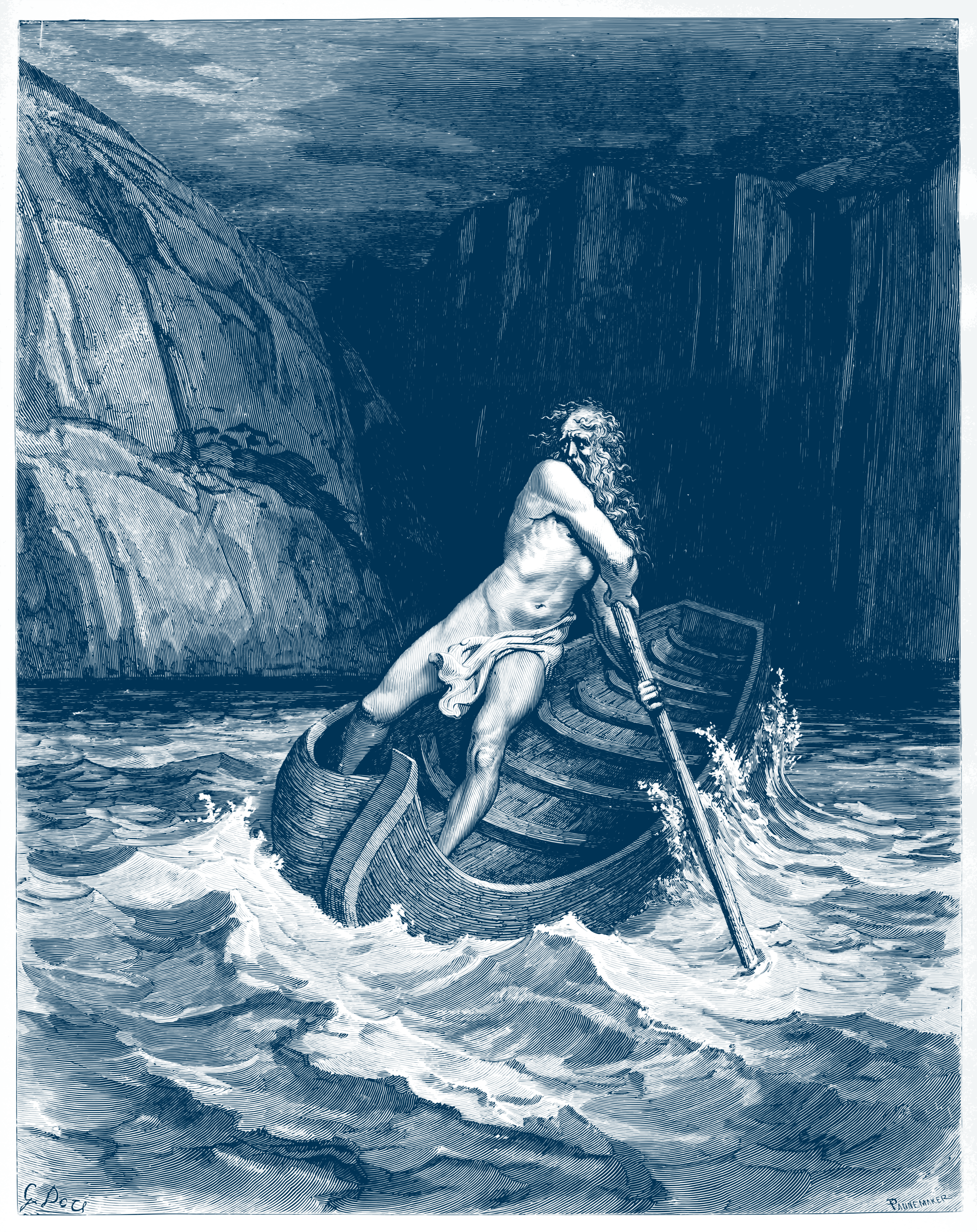 This is a completely free image Charon, by Doré 1857 (in blue ink) that you can download, post, and use for any purpose.