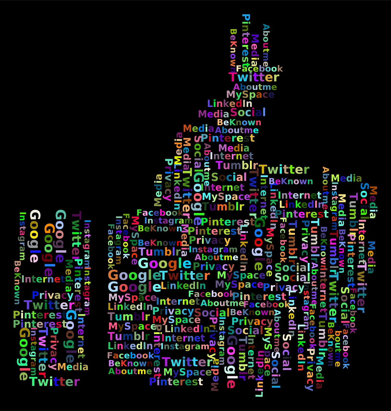 Tags: agree, approve, chromatic, colorful, condone, encourage, facebook, gesture, google, hand, instagram, internet, like, linkedin, pinterest, prismatic, privacy, rainbow, silhouette, social media, tag cloud, tagcloud, tags, text, thumbs up, tumblr, twitter, type, typography, weighted list, word cloud, word
