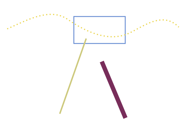 This features a white background with various lines and shapes drawn on it. There are three distinct lines, one in the top left corner, another in the middle of the scene, and the third line is located towards the bottom right side. Additionally, there are two triangles present in the scene, one near the center-left area and the other slightly to the right of it. The overall composition creates a visually interesting and somewhat abstract artistic piece.