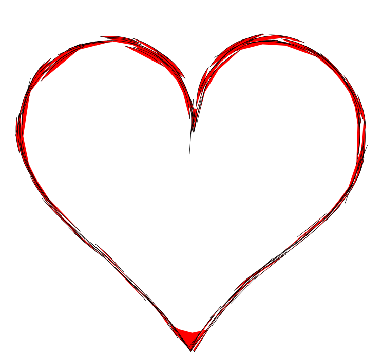 This features a large, red heart shape drawn on a white background. The heart is filled with red ink, giving it a bold and striking appearance. The outline of the heart is distinctly visible, making it stand out against the white background. This simple yet eye-catching design could be used for various purposes such as decoration or as an artistic element in a project.