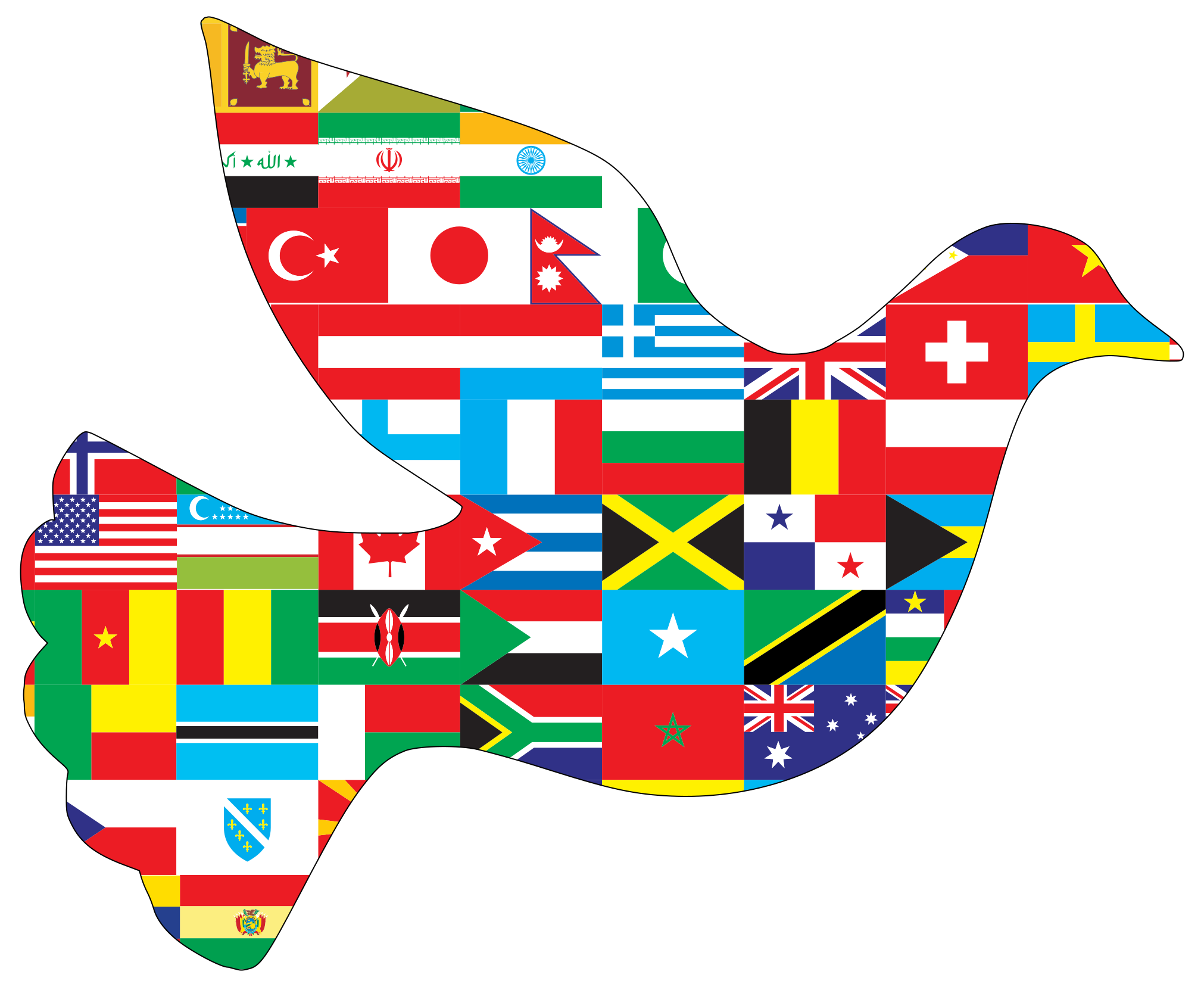 This features a large, colorful bird with its wings spread wide. The bird is adorned with various flags from different countries, showcasing the diversity of nations around the world. There are at least 14 flags visible on the bird's wings, each representing a unique country or region. The combination of the bird and the flags creates an eye-catching and vibrant display that celebrates global unity and cultural differences.
