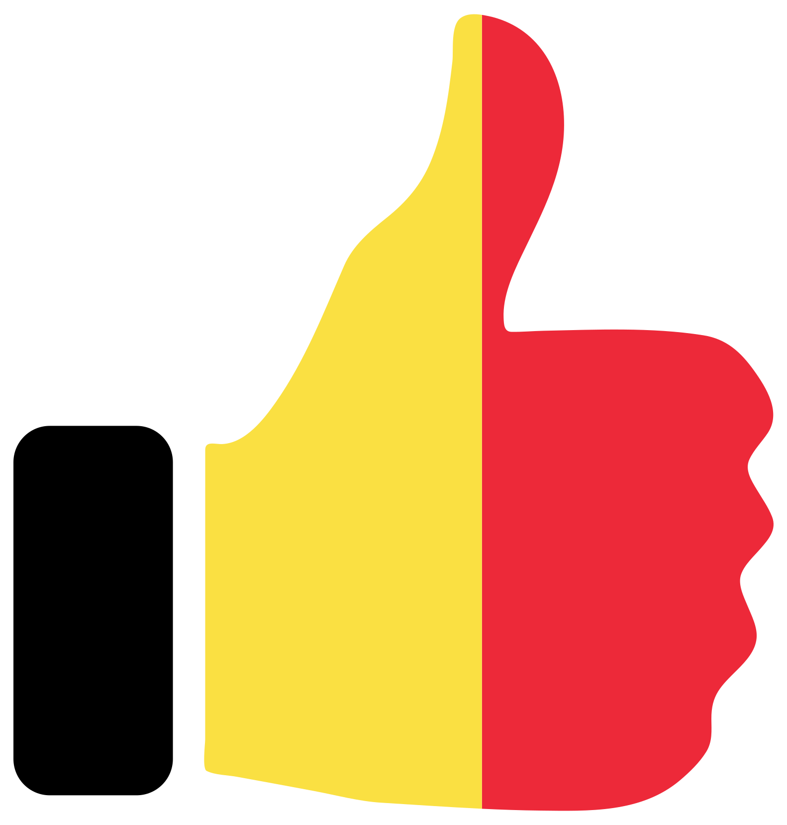 This features a thumbs up symbol with the colors of Belgium, which are yellow and red. The thumbs up is prominently displayed in the center of the image, while the yellow and red colors create a vibrant and eye-catching appearance. This design could be used to represent support or approval for something related to Belgium or simply as an artistic representation of the country's flag.