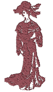 This features a woman in red clothing, possibly a dress or a coat. She is standing and appears to be looking downward. The woman's outfit has a unique design with a patterned texture that adds visual interest to the scene. The overall composition of the image suggests an artistic representation of the woman, perhaps as a stylized portrait or a decorative piece.