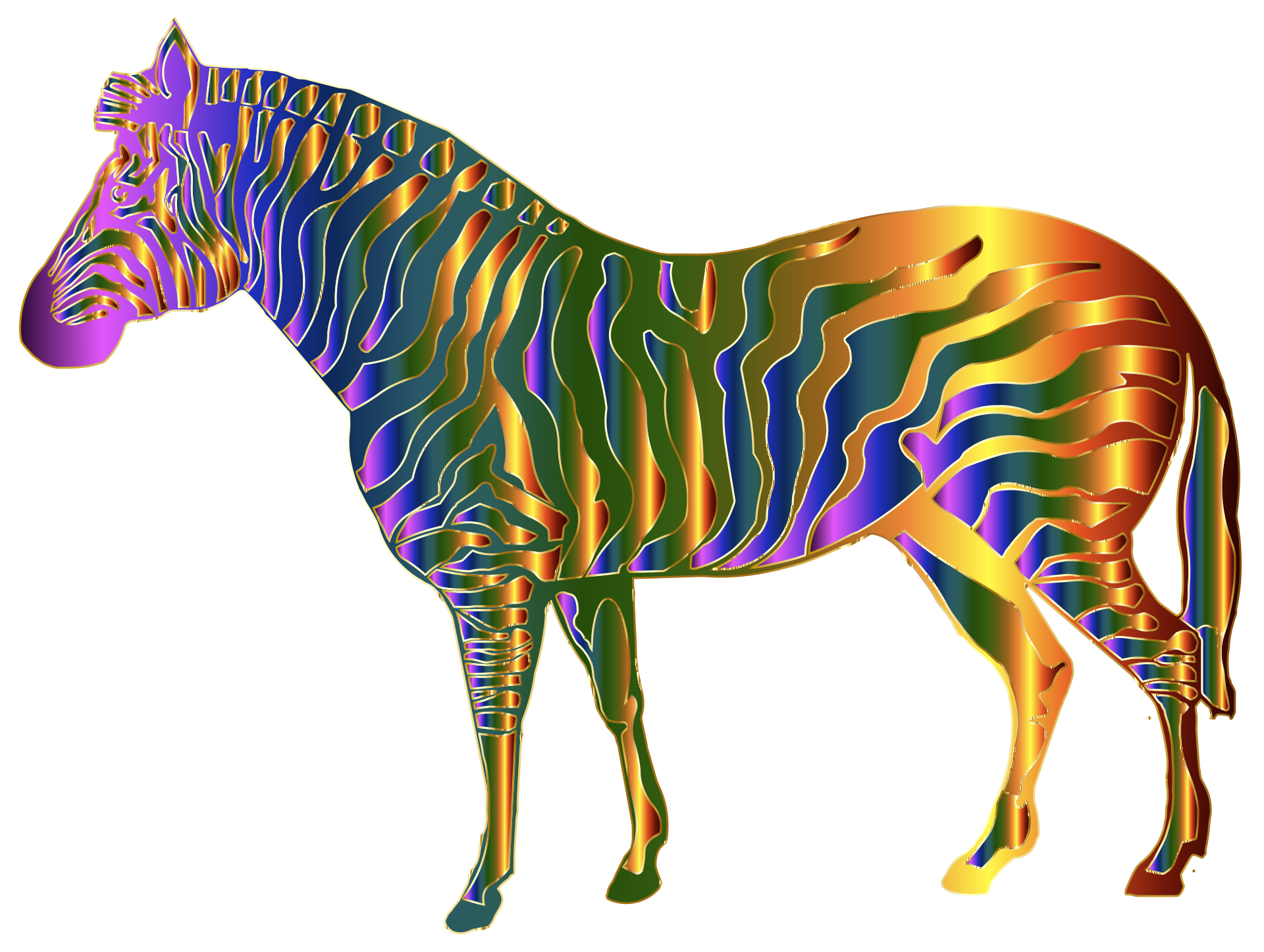 This features a unique and colorful zebra silhouette. It is seen from the side, with its head turned to the left. The zebra's body is adorned in vibrant colors, creating an eye-catching display. This artistic representation of a zebra adds a touch of creativity and visual interest to the scene.