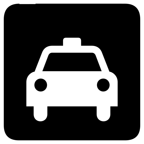 This features a black and white car icon, which is part of an airport symbol set. This icon represents taxi services at the airport, indicating that passengers can easily access transportation to their desired destinations upon arrival or departure. The car icon is prominently displayed in the center of the image, with its distinctive shape and design making it easily recognizable for travelers.