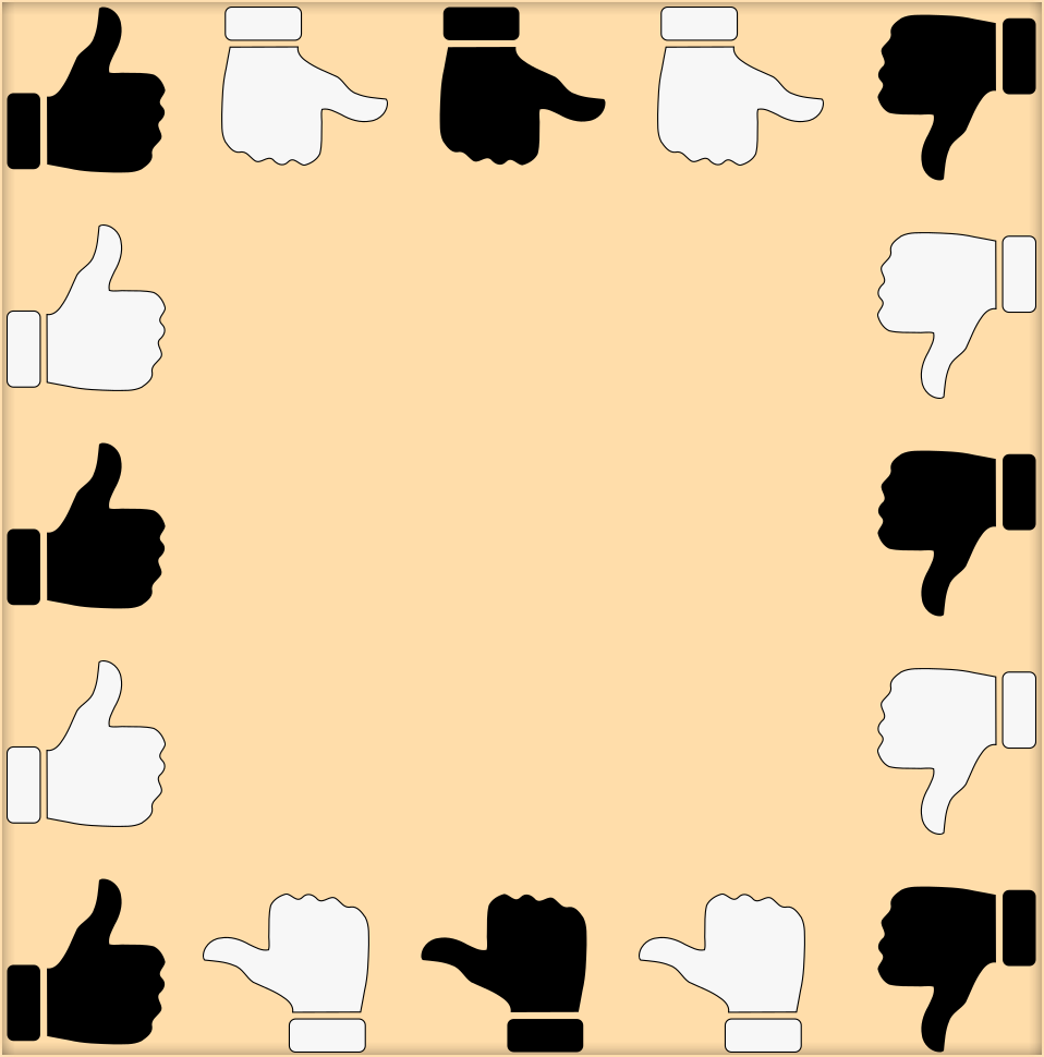 This features a large, square-shaped frame with a beige background. In the center of this frame is an array of black and white thumbs up signs, creating a visually appealing pattern. These thumbs up signs are scattered throughout the entire frame, filling it with their presence. The combination of these signs and the neutral color palette creates a pleasant and inviting atmosphere for viewers to enjoy.