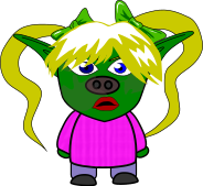 This features a cartoon character, possibly a goblin or an elf, wearing a pink shirt and blue eyes. It has blonde hair and is holding its mouth open as if it's making a funny face. The character appears to be standing in front of a yellow background, which adds a pop of color to the scene. Overall, this cartoon character exudes a playful and lighthearted vibe.