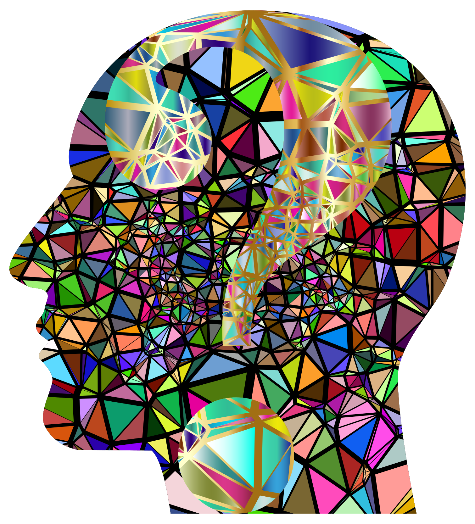This features a colorful and intricate design of a head, likely a representation of the human brain. The head is made up of various geometric shapes and patterns that create an interesting visual effect. These shapes are arranged in such a way that they form the outline of a face, with the eyes being particularly noticeable. The colors used in this artwork are vibrant and diverse, making it stand out as a unique piece of art. The combination of different shapes and colors creates an engaging visual experience for viewers, inviting them to explore the intricate details within the design. Overall, the image showcases creativity and skill in crafting a visually captivating representation of the human head.