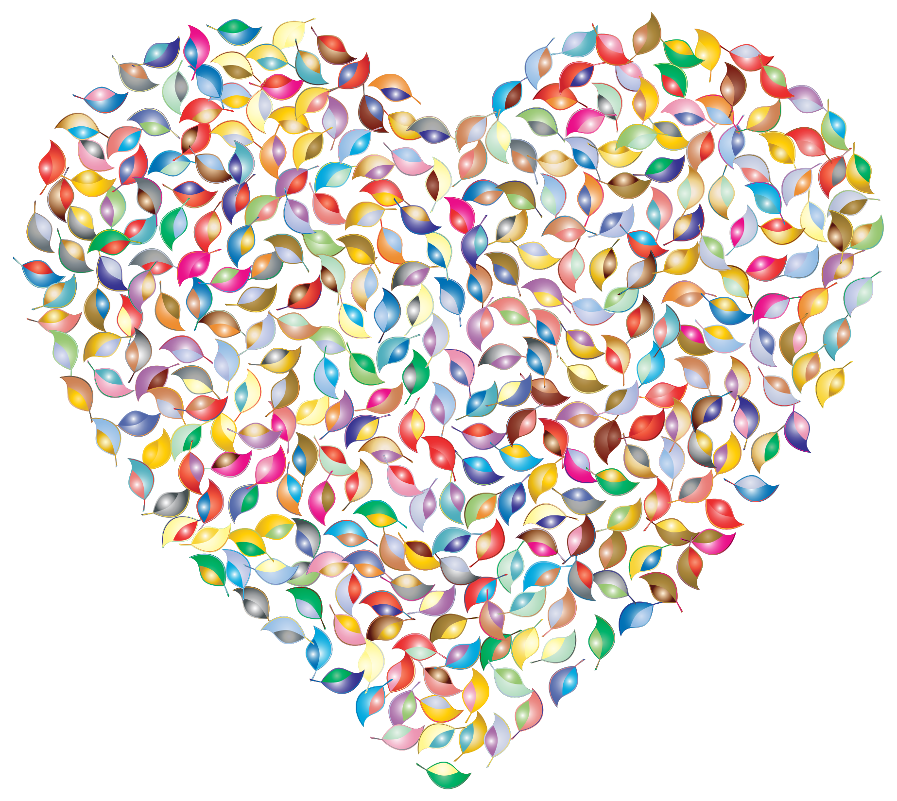 This features a heart made out of various colored leaves. These leaves are scattered all over the heart, creating a visually appealing and vibrant display. There is an assortment of colors in the leaves, including reds, greens, yellows, pinks, and oranges. The leaves are arranged in such a way that they fill up the entire heart shape, making it a unique and eye-catching design. This artistic arrangement showcases the beauty of nature and the versatility of using leaves as an unconventional medium for creating decorative pieces.