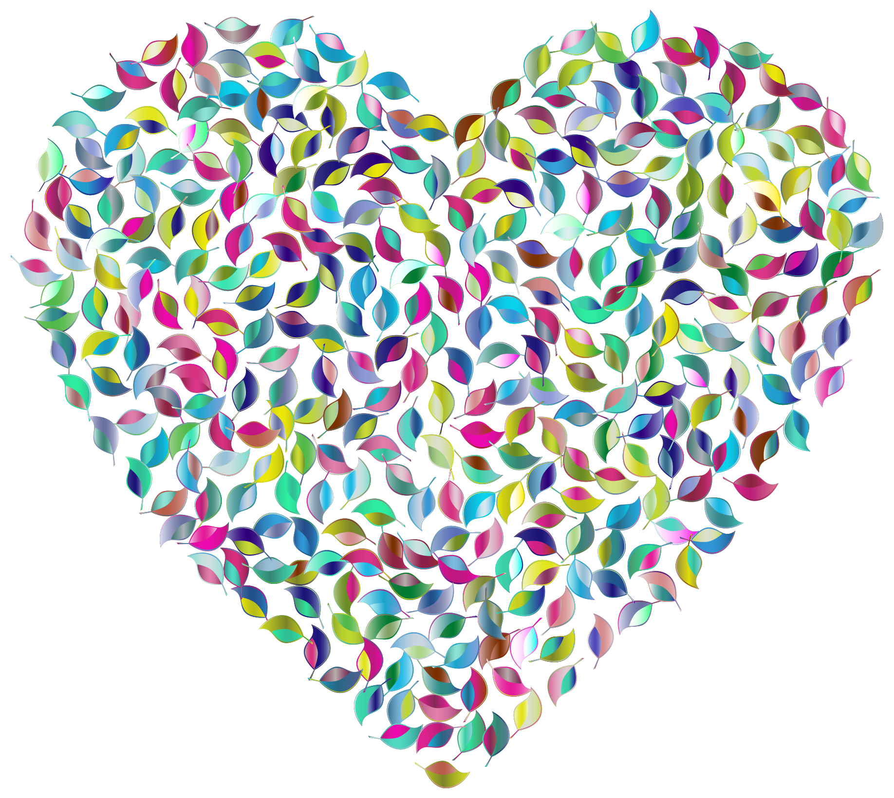This features a heart made out of leaves, with each leaf having different colors. The heart is composed of numerous small leaves that are arranged in such a way as to create the shape of a heart. These leaves come in various shades and sizes, adding visual interest and depth to the overall composition. The close-up view of the heart allows for a detailed examination of each individual leaf, showcasing their unique colors and textures. This artistic representation of a heart made out of leaves is both visually appealing and thought-provoking.