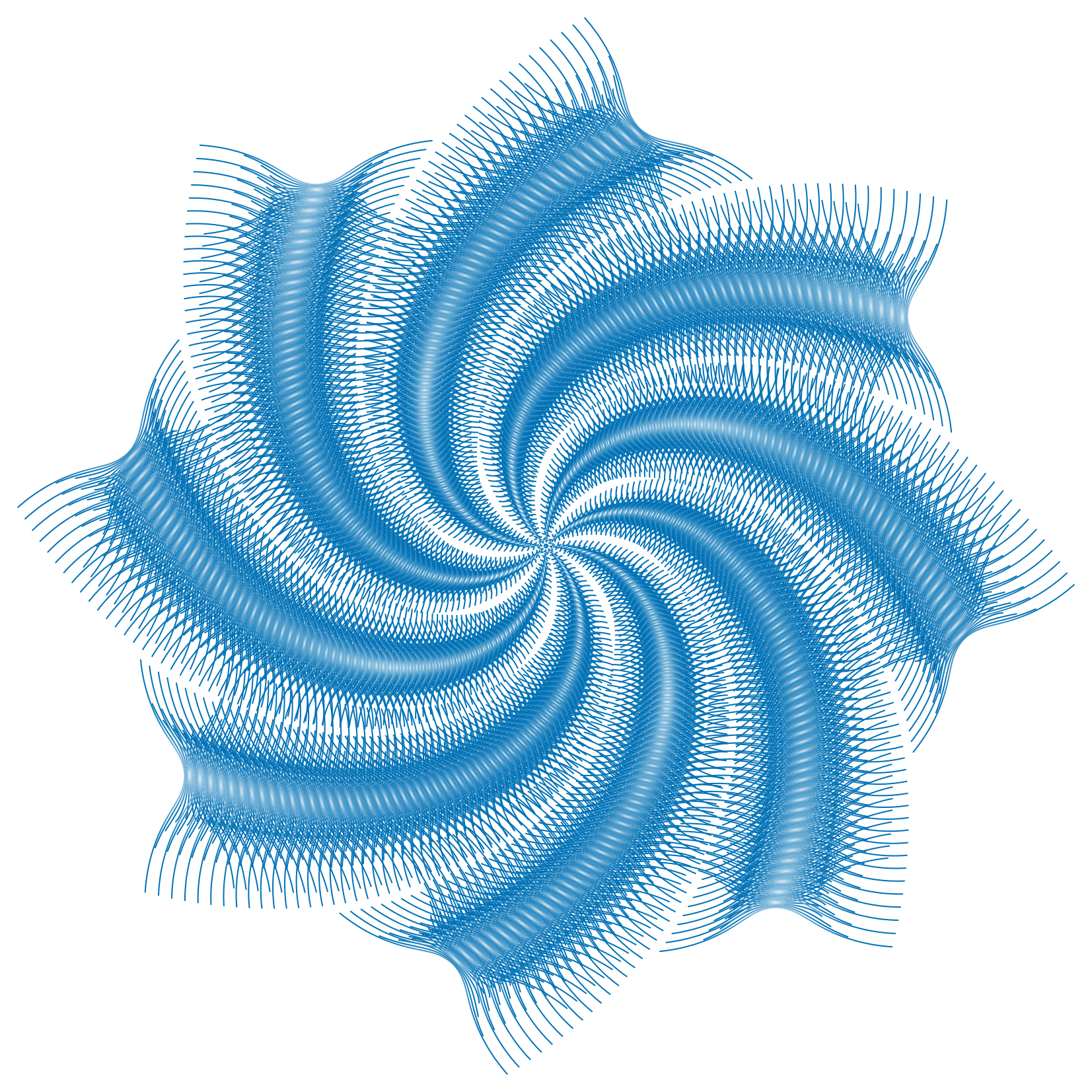 This features a blue spiral design with many fine, thin lines. These lines create an intricate pattern that resembles a swirl or a whirlpool. The spiral is the central focus of the image and appears to be the main subject matter. The design's color is predominantly blue, giving it a calm and soothing appearance. Overall, the image showcases a visually appealing and intricate pattern that captures the viewer's attention.