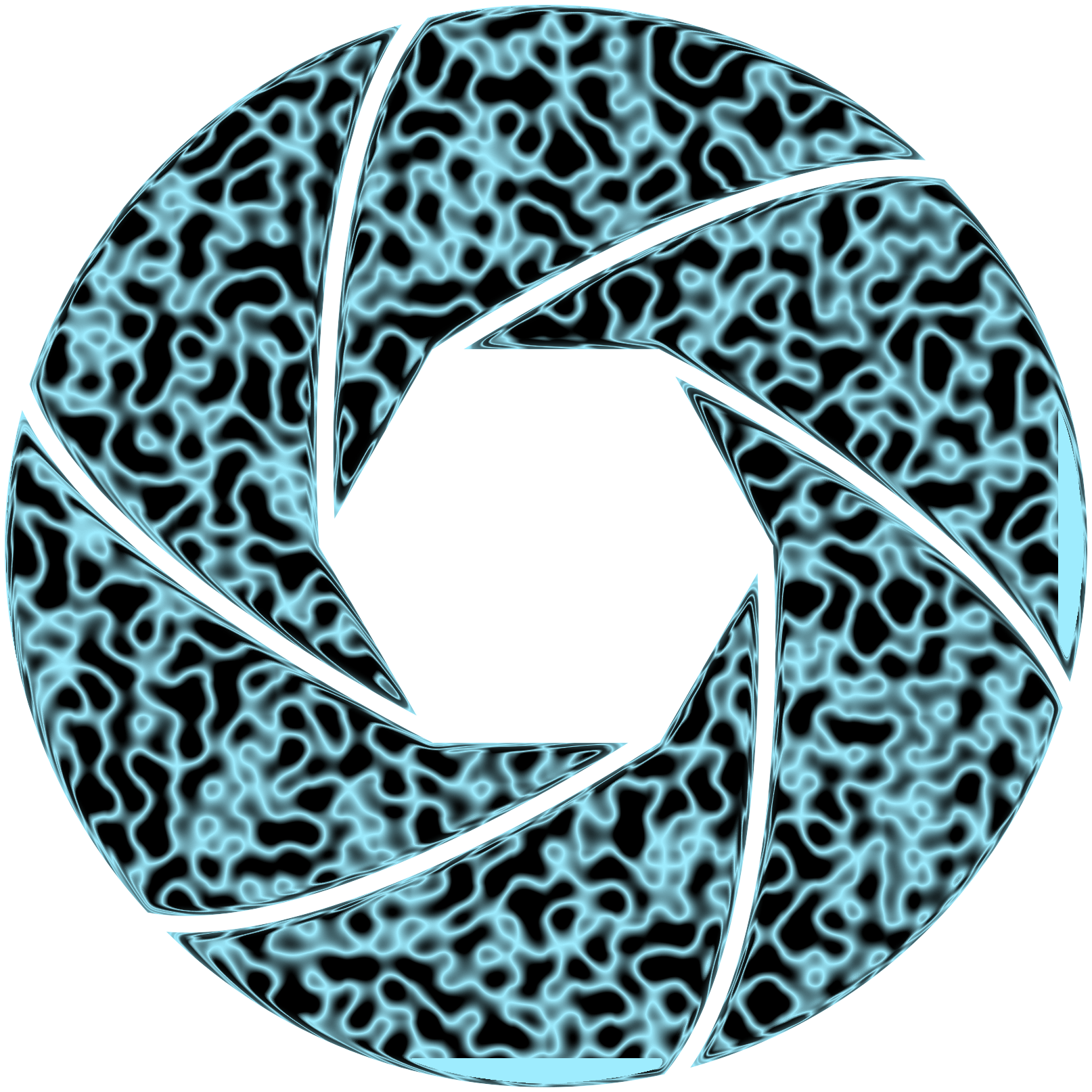 This features a circular design with a blue and white color scheme. In the center of the circle, there is an oval shape that appears to be a camera lens. This lens has a unique pattern on it, giving it a distinctive appearance. The overall design gives off a futuristic vibe, making it an interesting visual element.