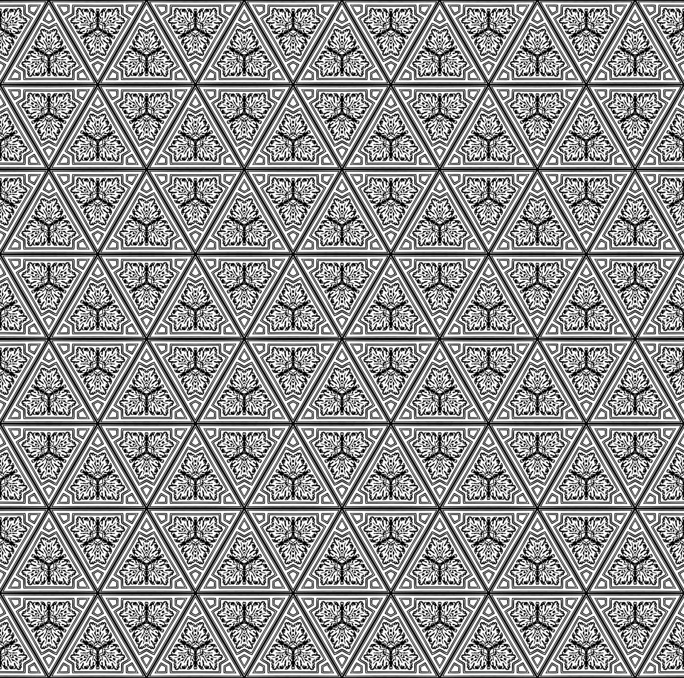 This features a large, intricate design made up of many small triangles. These triangles are arranged in various patterns and form a seamless pattern that covers the entire image. The design is reminiscent of an ornate tapestry or a decorative piece for wallpaper or fabric. The close-up view of this artistic creation highlights its intricate details, making it an interesting focal point in any setting.