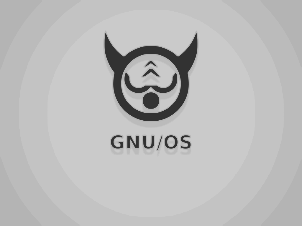 This features a logo for GNU/OS, which is an operating system. The logo consists of a black and white design with a circle shape. Inside the circle, there are two triangles pointing in opposite directions, creating a unique visual effect. The overall appearance of the logo gives off a sense of modernity and sophistication.