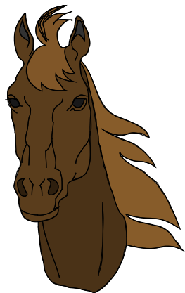 This features a brown horse with its head turned to the side. The horse's mane is blowing in the wind, giving it an animated appearance. The horse has two ears and one eye visible, adding to its lifelike quality. The drawing of the horse appears to be a cartoon or comic style, which adds a playful element to the image. Overall, the picture captures the essence of a horse in motion with its head turned, creating an engaging visual experience for viewers.