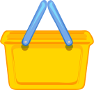 This features a yellow shopping basket with blue handles. The basket is open, revealing its contents and the handles are securely attached to it. This iconic symbol of shopping is often used in various contexts such as advertisements or websites related to retail or e-commerce. The vibrant colors of the basket and handles make it easily recognizable and visually appealing, which can be an effective way to draw attention to a product or service.