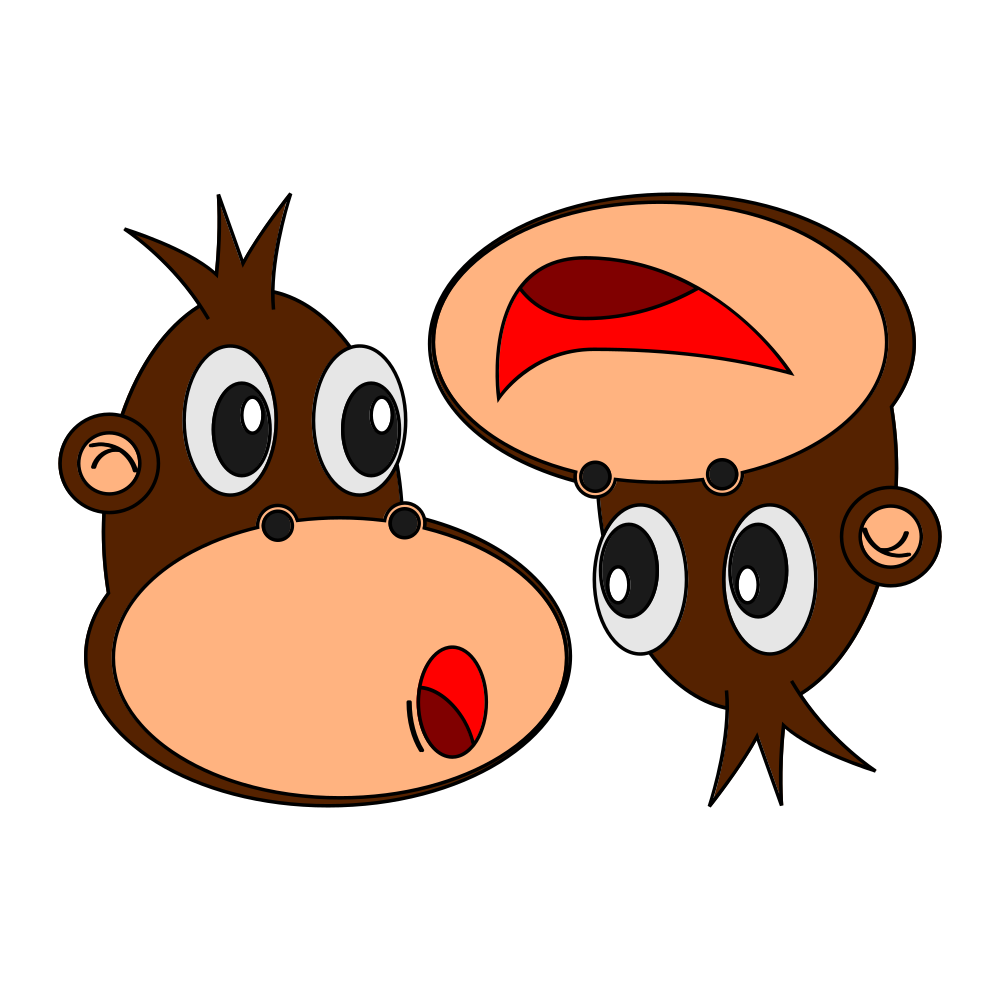 This features a cartoon monkey with an open mouth, seemingly yawning. It is positioned on the left side of the scene and appears to be the main focus of the image. On the right side of the image, there is another smaller monkey with its mouth wide open, possibly making a similar expression as the larger one. The two monkeys are placed in front of a white background, which creates a contrast between them and their surroundings.