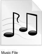 This features a music file icon with notes in it. The icon is placed on a white document, and the notes are black in color. This icon represents music files and can be used to indicate that there is a collection of music available for listening or downloading.