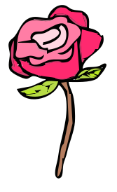 This features a pink rose with green leaves, sitting on top of a brown stem. The rose is the main focus of the scene and appears to be in full bloom. The stem supporting the rose is thin and long, providing a sense of depth to the illustration. The combination of the vibrant pink color of the rose and the contrasting brown hue of the stem creates an eye-catching visual effect that draws attention to this beautiful floral display.