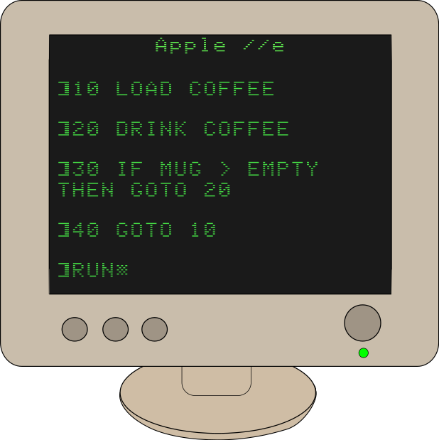 Tags: computer, monitor, office, school, screen, technology, coffee, morning, joke, parody, basic, programming, computer apple