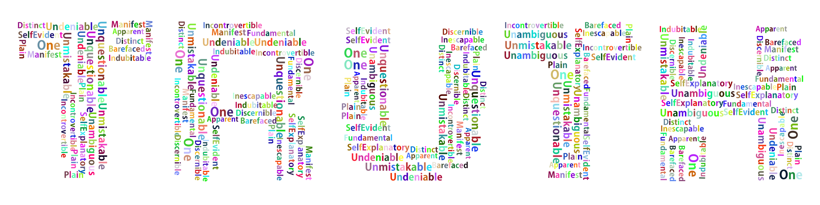 This features a large word "Truth" written in various colors, with each letter made up of smaller words. These smaller words are arranged to form the larger word, creating an interesting and visually appealing display. The background is white, which provides a clean and uncluttered appearance for the text. This artistic arrangement of letters can be seen as a creative way to convey the concept of truth or simply as an eye-catching design element.