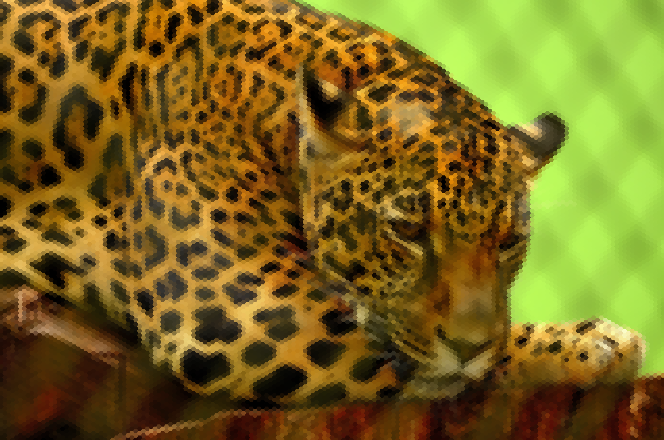 This features a large, leopard-spotted cat lying on its side in an enclosure. It appears to be resting or sleeping comfortably on the ground. The cat's spots are clearly visible and create a striking pattern across its body. The enclosure is surrounded by a fence, providing a secure environment for the animal. Overall, it is a peaceful scene of a leopard enjoying some downtime in its habitat.