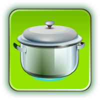 This features a close-up of a pot or pan, which is prominently displayed in the center. It appears to be a stylized representation of a cooking utensil, possibly used for baking or other culinary purposes. The pot's design and color give it an appealing appearance, making it suitable for use as a visual icon or symbol.