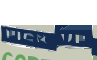 This is a blue and gray colored sign that says "pick up" on it. The sign has white outlines around the words, making them stand out against the background. The sign appears to be used for advertising or promoting an event or service related to picking something up.