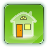 This features a green square with an illustration of a house. The house is depicted as having a yellow door and a window, giving it a warm and inviting appearance. The overall design of the icon suggests that it could be used to represent a home or real estate theme.