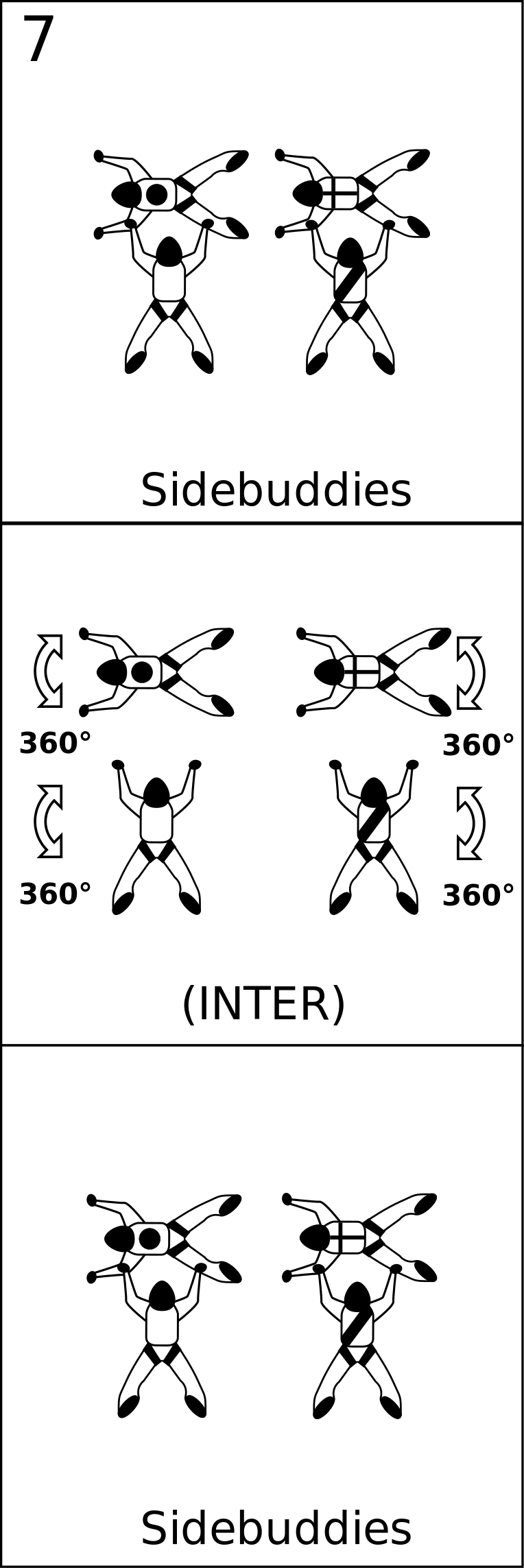 This is a series of diagrams showing the positions and movements of skydivers in various formations. There are six different diagrams, each depicting a specific formation or position. Each diagram has a label indicating the name of the formation or position. These diagrams likely represent the skills and techniques required for competitive skydiving events. The images showcase the intricate coordination and teamwork involved in these sports, as well as the precision needed to execute complex maneuvers while airborne.