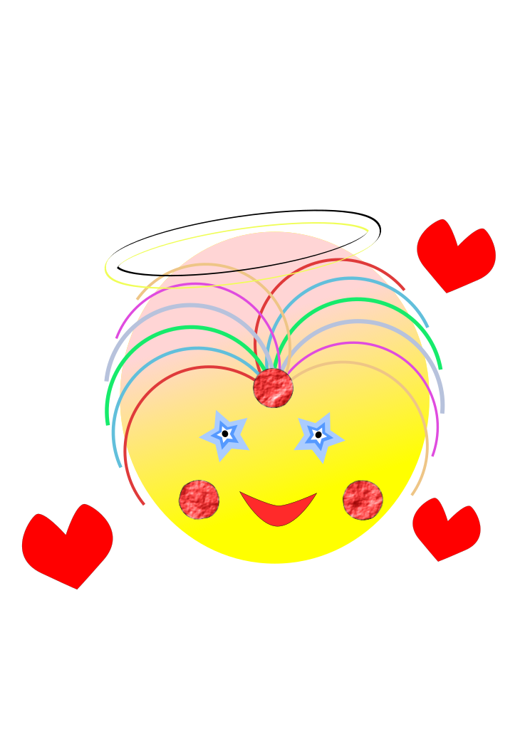 This features a yellow smiley face with stars for eyes, and hearts surrounding it. The heart-shaped face is the central focus of the picture, and its bright color stands out against the background. The hearts are scattered around the smiley face in various sizes and positions, adding to the overall cheerful atmosphere of the image.