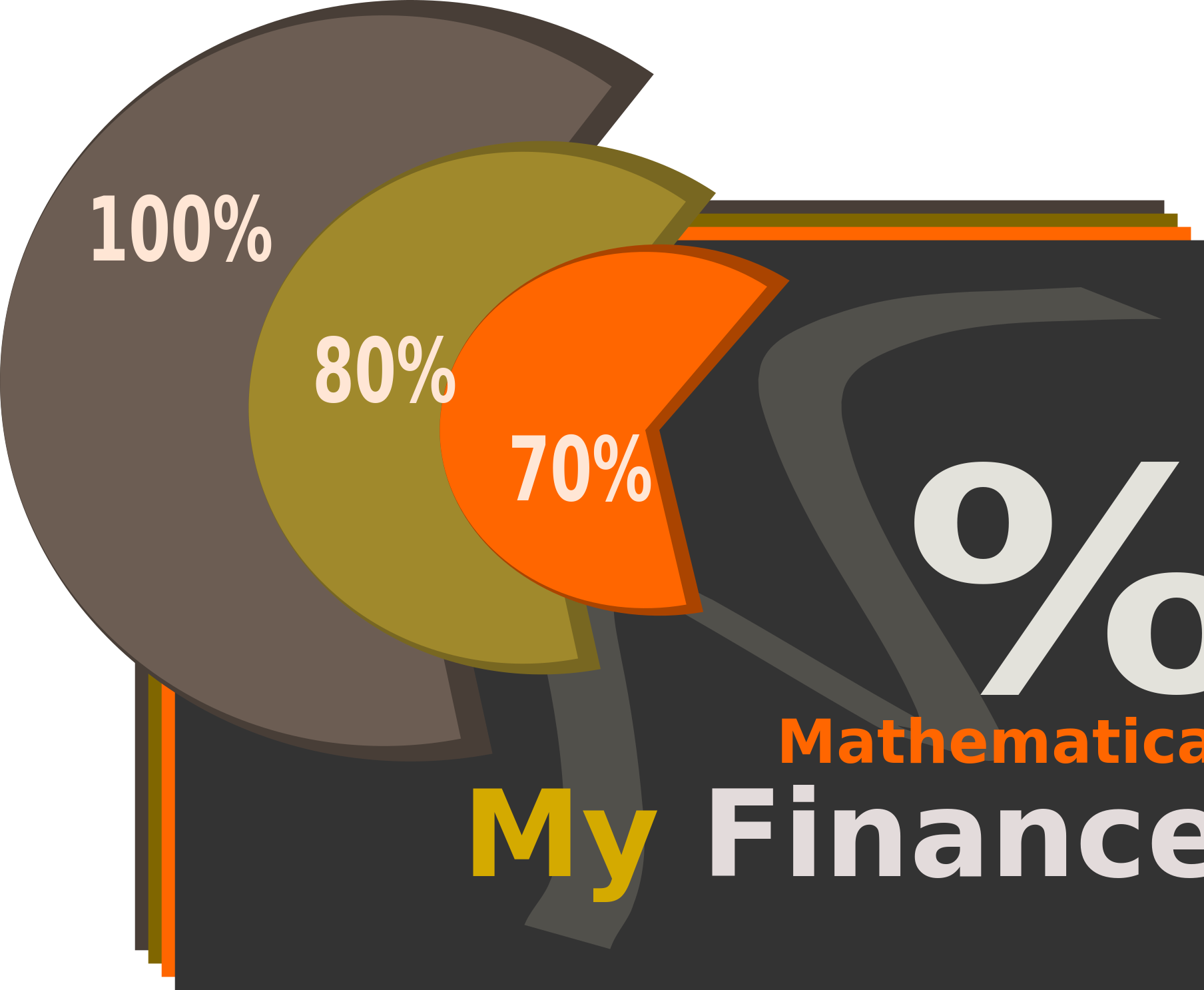 This features a graphic that reads "My Finance" with the number 80% displayed in the center. This is accompanied by a pie chart, which represents the percentage of the total amount spent on mathematics. The pie chart is divided into three sections, each representing different percentages: 10%, 70%, and 20%. These numbers are written in orange and placed within the pie chart's respective sections. The overall design gives an impression of a financial breakdown or analysis related to mathematics.