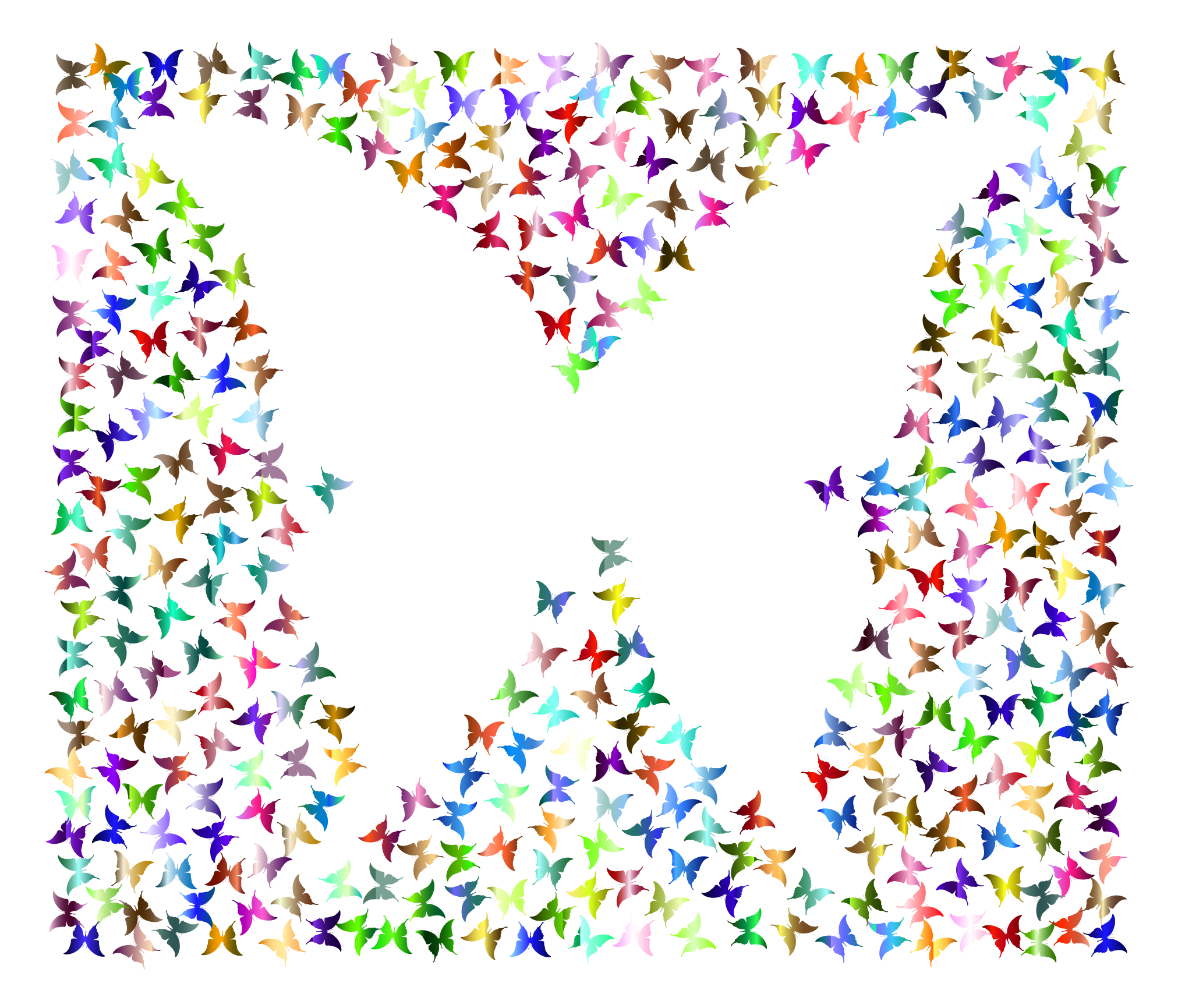 This features a large, colorful butterfly made up of many smaller butterflies. These smaller butterflies are scattered throughout the scene in various colors and sizes, creating an eye-catching pattern that resembles a kaleidoscope. The overall effect is a vibrant and lively display of butterflies, showcasing their beauty and diversity.