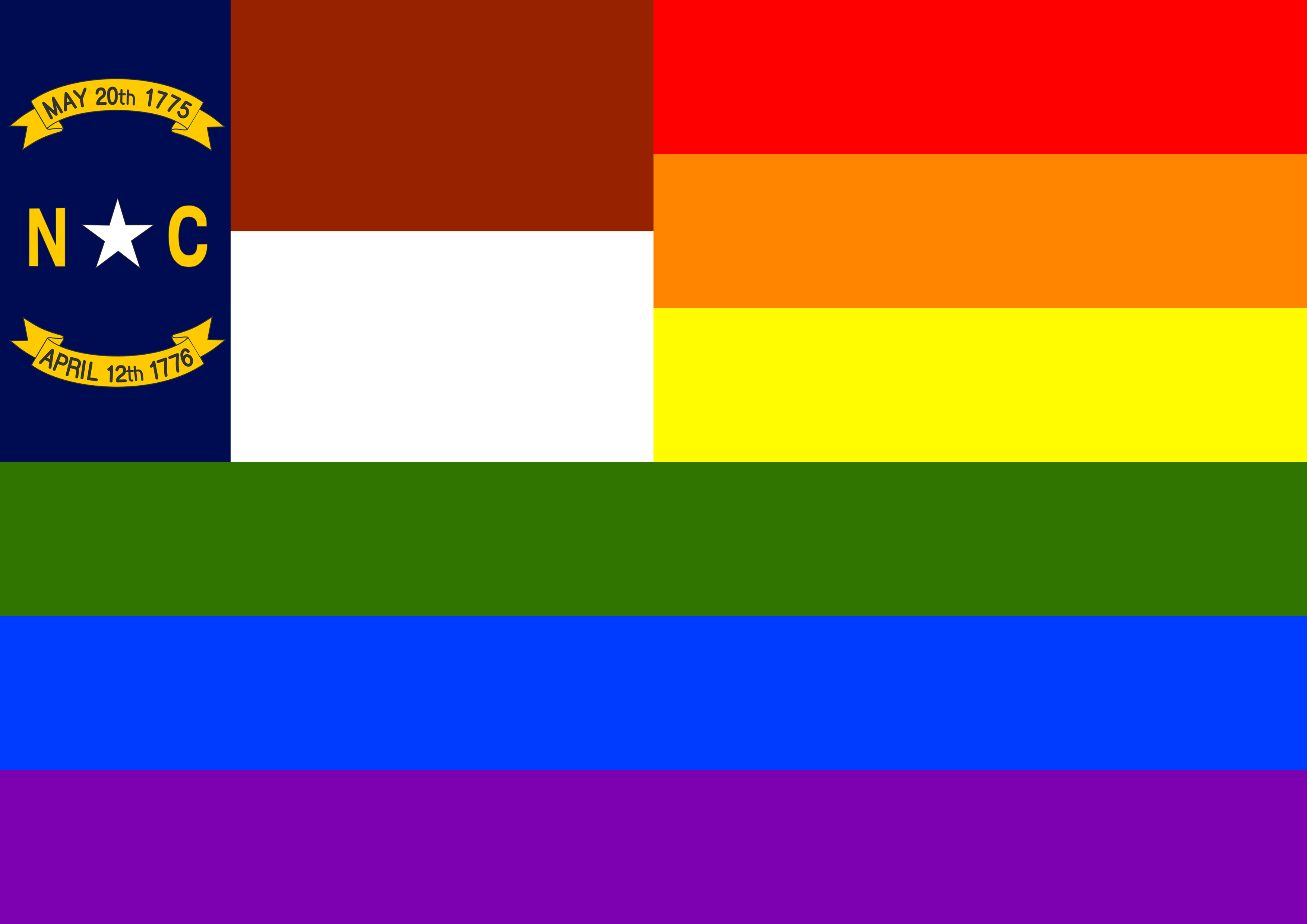 This features a flag of the state of North Carolina, with its colors and design displayed prominently. The flag is made up of several different colored stripes, including red, white, blue, green, yellow, purple, and orange. These colors are arranged in a specific pattern that represents the state's identity. The flag is waving in the wind, showcasing its vibrant colors and unique design.