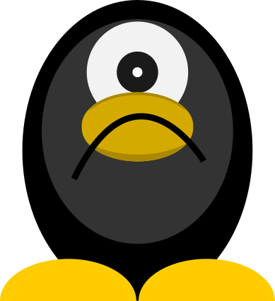 This features a cartoon character with a frowning expression, giving it an unhappy appearance. This character is designed to look like a black and yellow bird, possibly a parrot or a similar species. The bird's face has two large eyes, one on each side, which contribute to its expressive look. Additionally, the bird has a beak that appears to be slightly open, further emphasizing its frowning expression. Overall, this character is an interesting and unique design that captures attention with its distinct features.