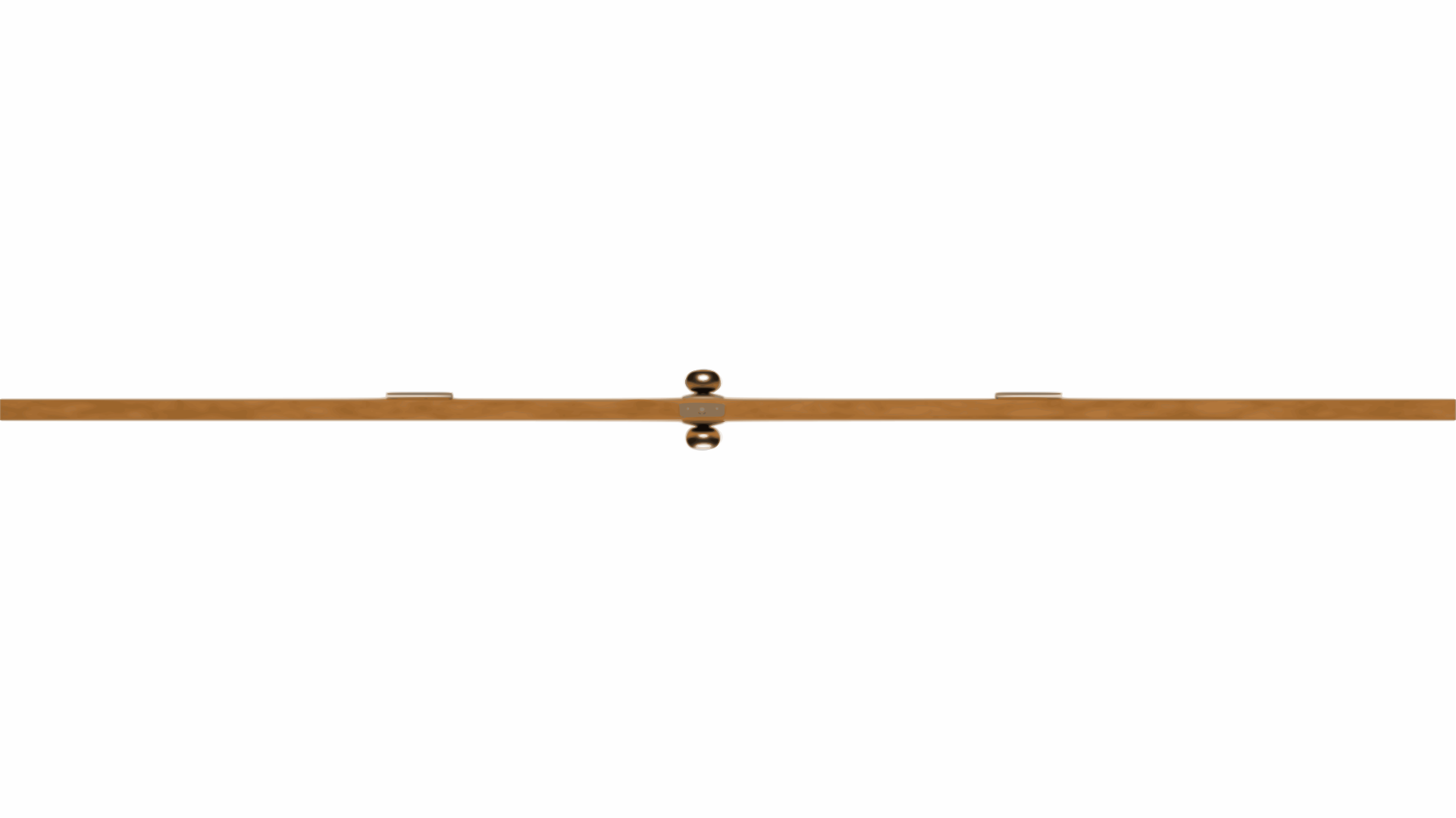 This features a wooden plank that is hanging on the wall. It appears to be an artistic piece or decoration, as it is not attached to any other structure. The plank is positioned horizontally and spans across the entire width of the scene. The background consists of a white wall, which provides a clean and minimalist backdrop for the wooden plank.