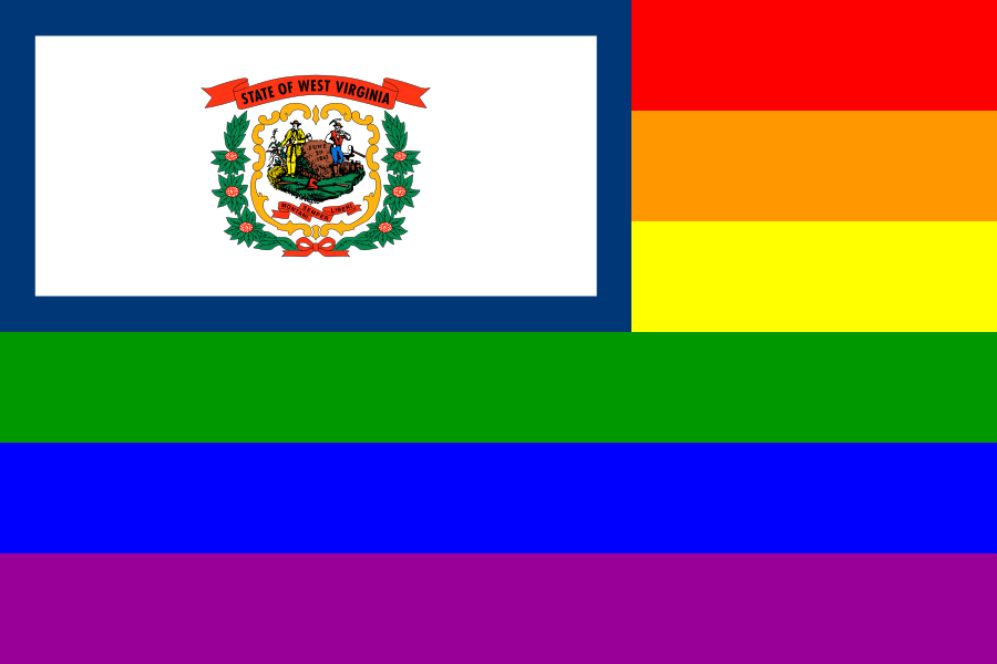 This features a flag of West Virginia, which is superimposed over the rainbow flag. This combination creates an interesting and unique visual effect that combines the colors of the rainbow with the state's flag. The rainbow flag represents LGBTQ+ pride and inclusivity, while the West Virginia flag symbolizes the state's identity and heritage. By placing these two flags together, it highlights the importance of diversity and acceptance in society.