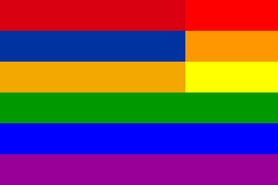 This features a colorful display of the rainbow flag, with each color represented by a different shade. The flag is made up of six distinct sections, each one featuring a different hue. These colors are arranged in a specific order, starting from red at the far left and moving through orange, yellow, green, blue, and violet to complete the spectrum. The rainbow flag serves as a symbol of pride for the LGBTQ+ community, representing diversity and inclusivity.
