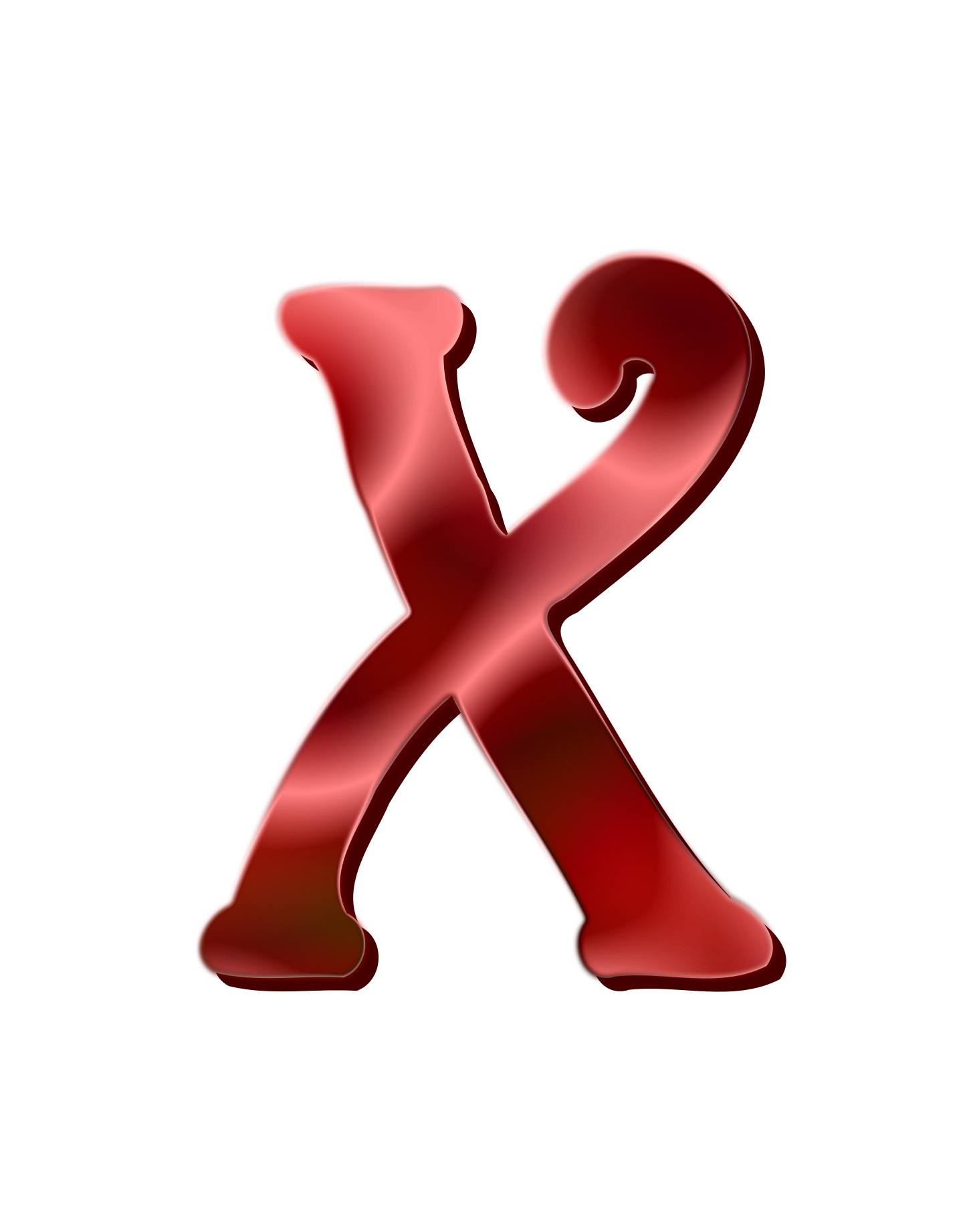This features a red letter X, which is the twelfth letter in the English alphabet. It appears to be made of liquid or frosting and has a slightly curved shape. The color of the letter is predominantly red with some orange hues visible on its edges. This unique design gives it an interesting appearance that stands out from typical letter designs.