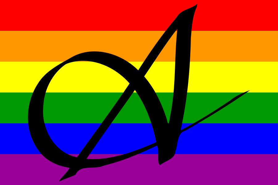 This features a colorful rainbow flag with the letter "A" prominently displayed on it. The flag is large and takes up most of the frame, creating an eye-catching visual effect. The colors of the flag are vibrant and create a sense of joy and positivity. The design of the flag is simple yet elegant, making it an attractive symbol for various occasions or events.