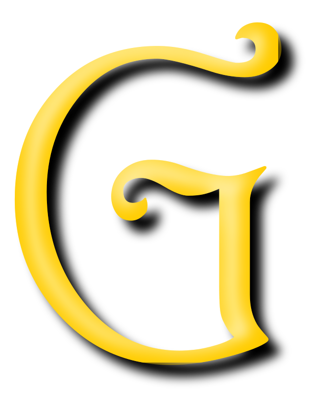 This features a large, golden letter G prominently displayed on the screen. The letter is surrounded by a decorative border that adds to its visual appeal. The color of the letter and its border are both yellow, creating a striking contrast against the white background. This eye-catching design makes the letter stand out and draws attention to it.