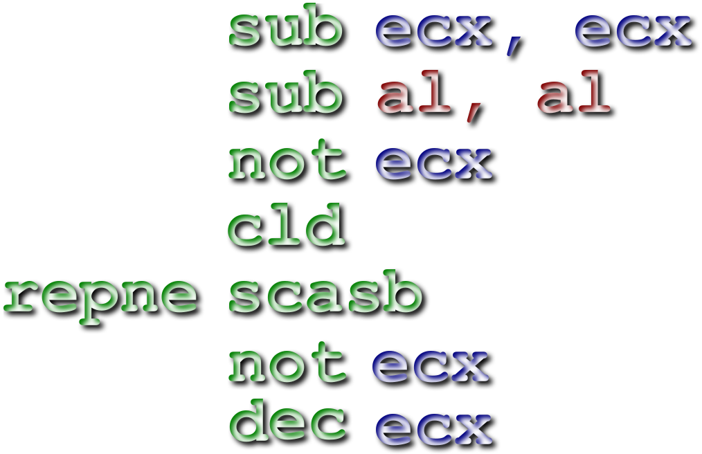Tags: computer, code, sub, ecx, al, not, dec, length string