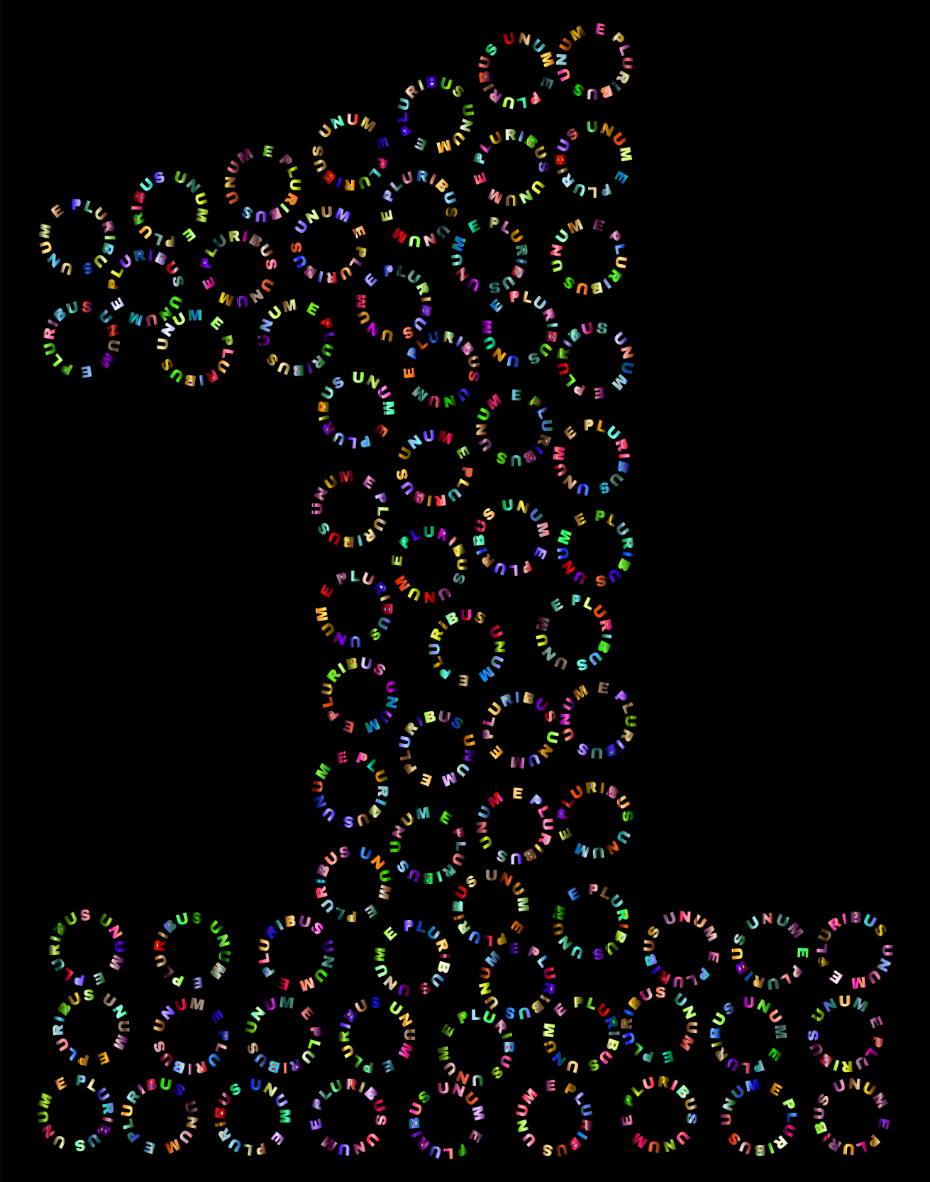 This features a large number one, made up of many small circles. These circles are arranged in various positions and sizes throughout the entirety of the number. The colorful circles create an eye-catching pattern that makes the number stand out against its black background. This unique design could be used for decorative purposes or as a creative way to represent the number one.