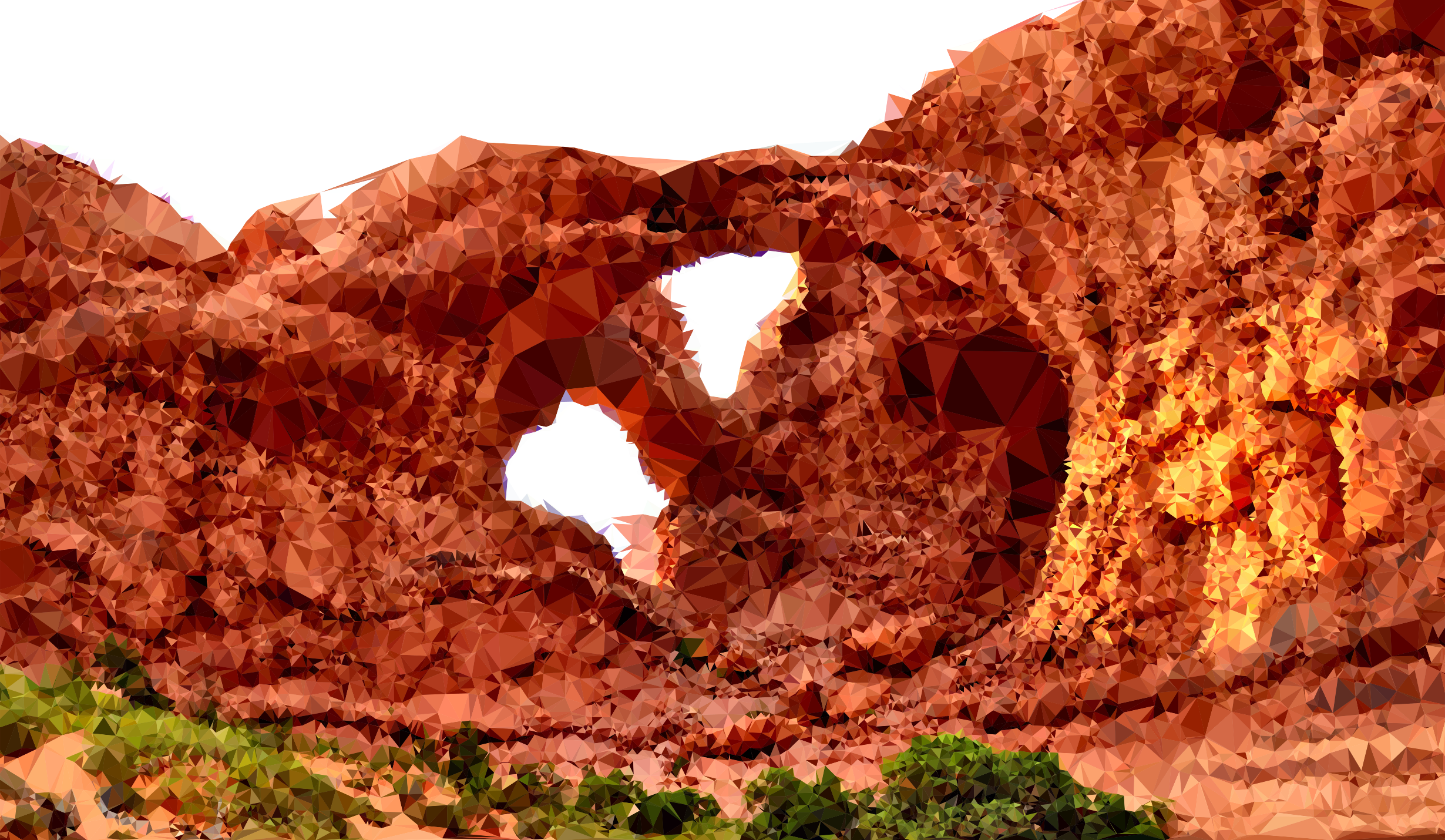 This features a beautiful landscape with a large rock formation that has been carved into the shape of an arch. This natural wonder is surrounded by a lush green field, creating a striking contrast between the rock and the vegetation. The archway appears to be a popular spot for visitors, as there are several people scattered throughout the scene, enjoying the view or taking photographs. The overall atmosphere evokes a sense of adventure and exploration, inviting viewers to imagine themselves walking through this unique landscape.