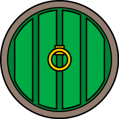 This features a round, green door with an arched top. The door is adorned with a golden ring on the center of it, adding a touch of elegance to its design. The door appears to be made of wood and has a distinctive hinge in the middle, giving it a unique appearance. This image could represent a fantasy or medieval theme, as the green color and gold accents evoke a sense of mystique and enchantment.